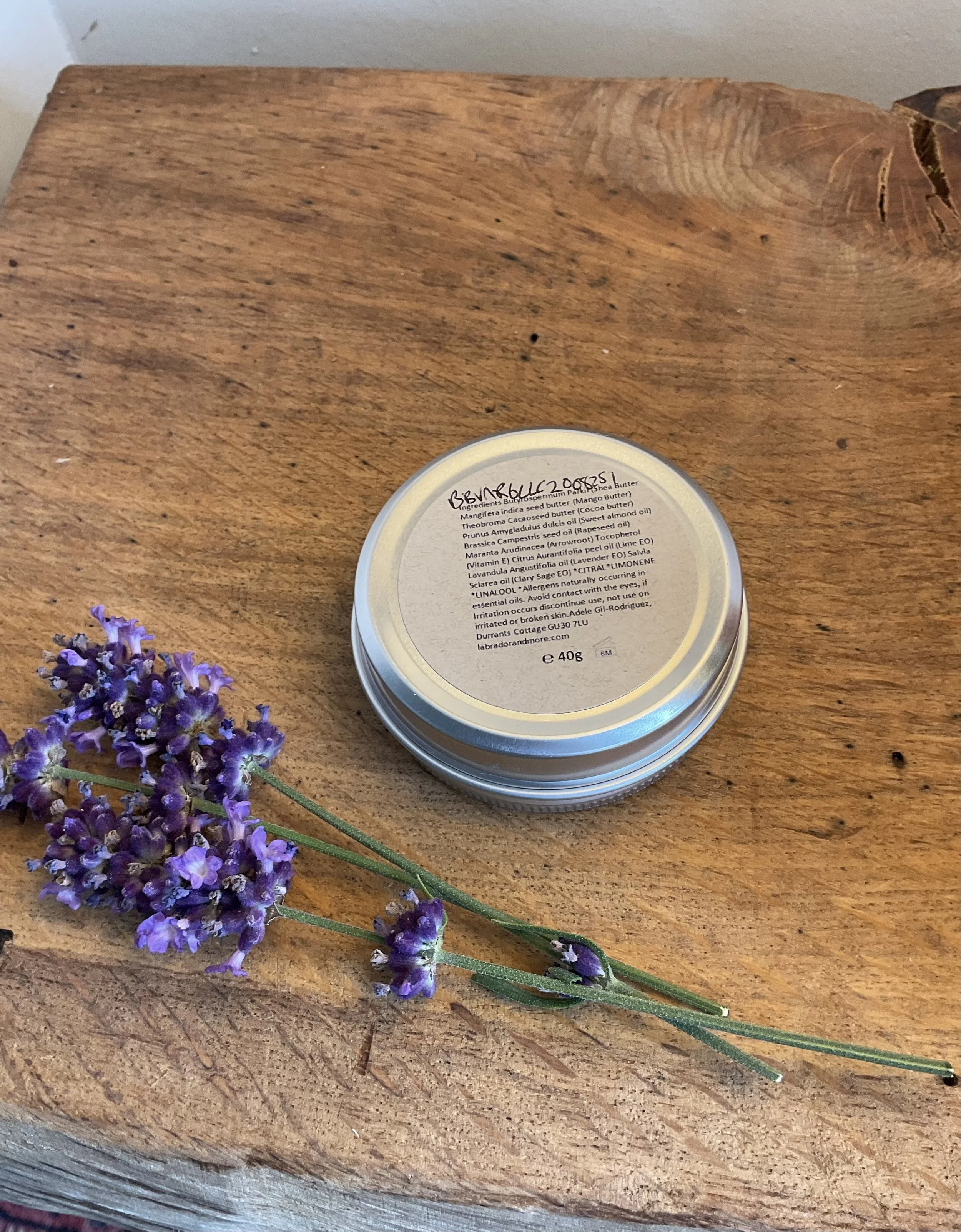 Shea butter (Butyrospermum parkii butter) Mango butter(Mangifera indica seed butter) Sweet almond oil (Prunus Amygdalus dulcis oil) Rapeseed oil (Brassica Campestris seed oil) Cocoa butter (Theobroma cacao seed butter) Arrowroot Powder (Maranta arundinacea root powder) Vitamin E (Tocopherol) Citrus Sinensis peel oil (Orange essential oil) Thymus vulagaris leaf oil (White Thyme essential oil) * CITRAL* LIMINENE* LINALOOL* GERANOIL * naturally occurring allergens in essential oils